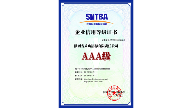 陜西省招標(biāo)投標(biāo)協(xié)會2023年AAA企業(yè)